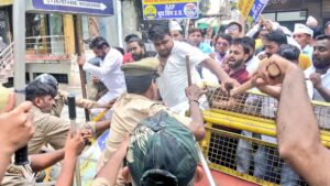 पुलिस पर कार्यालय में घुसकर यूथ विंग के कार्यकर्ताओं के साथ मारपीट का आरोप