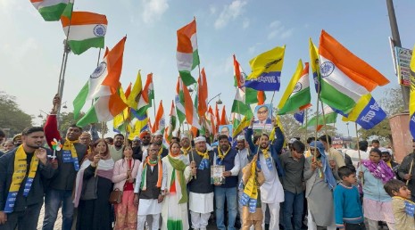 AAP ने लखनऊ में निकाली तिरंगा पदयात्रा, ‘संविधान बचाओ’ नारों से गूंज उठी राजधानी