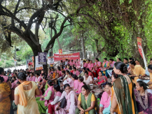 अपनी मांग को लेकर प्रदर्शन कर रहे आशा वर्कर्स को डराने व झूठी अफवाह फैलाने के विरोध में उतरे वर्कर्स