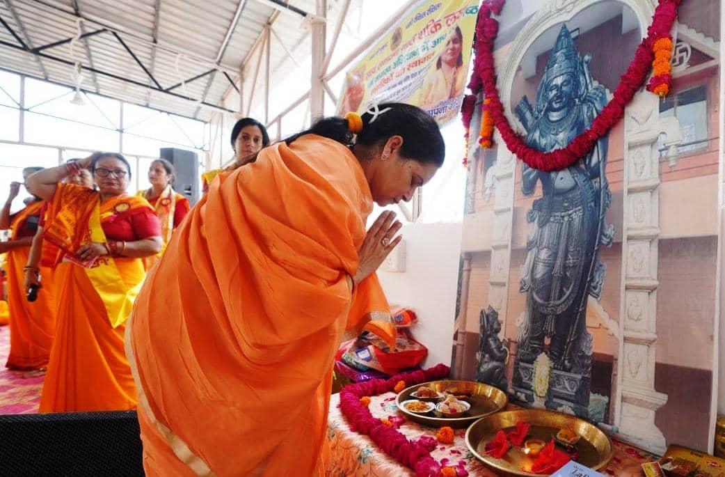 अयोध्या जन्मभूमि परिसर में मातृशक्तियों द्वारा सामूहिक “मासिक सुंदरकाण्ड पाठ” का सिलसिला 11 सितम्बर से शुरू हो गया है। श्रीराम जन्मभूमि तीर्थ क्षेत्र की ओर से लखनऊ की “ईश्वरीय स्वप्नाशी सेवा समिति” की सनातन ध्वज वाहिका सपना गोयल को इसका दायित्व सौंपा गया है। इस प्रथम सोपान में सैकड़ों की संख्या में समिति की विशेष रूप से डिजाइन की गई पीले रंग की साड़ी पहनकर महिलाओं द्वारा सामूहिक सुंदरकांड का पाठ किया गया। इसमें अयोध्या की स्थानीय मातृशक्तियों ने ही नहीं बल्कि लखनऊ और नैमिषारण्य तीर्थ क्षेत्र की उत्साहित महिलाओं ने भी सक्रिय सहभागिता की।