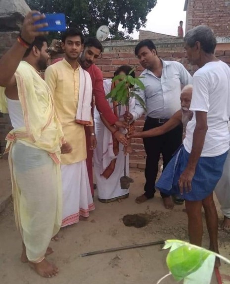 आजमगढ़: आचार्य भूपेंद्रानंद महाराज के शिष्य ने पेड़ लगाकर मनाया गुरु का जन्मदिन