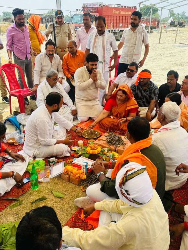 जिला अध्यक्ष लालगंज सूरज प्रकाश श्रीवास्तव लालगंज सांसद प्रत्याशी नीलम सोनकर ने किया भूमि पूजन