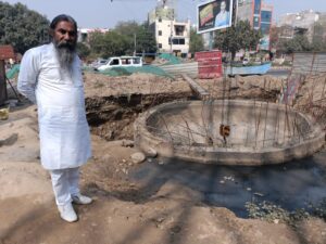 गड्ढे के बारे में बताते हुए सोलंकी ने कहा कि 28 अक्टूबर 2022  को इसका टेंडर पास हुआ था, टेंडर के पास होने के पैंतालीस दिनों के अंदर इस कार्य को पूरा करने का समय निर्धारित था लेकिन ठेकेदार की लापरवाही व दिल्ली जल बोर्ड की अनदेखी से आज साल भर बाद भी यह ज्यों का त्यों पड़ा है। ज्ञात हो कि यह गड्ढा भास्कराचार्य कॉलेज के ठीक अपोजिट  सर्विस रोड पर एवम महाराणा प्रताप द्वार के सामने स्थित है। इस गड्ढे के कारण रोजाना लाखो राहगीरों, महावीर एनक्लेव और मधु विहार के सात ब्लॉकों में रहने वाले लोगों को परेशानी का सबब बना हुआ है लेकिन दिल्ली जल बोर्ड एवम ठेकेदार के कान में जूं तक नहीं रेंग रही है।