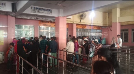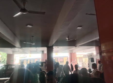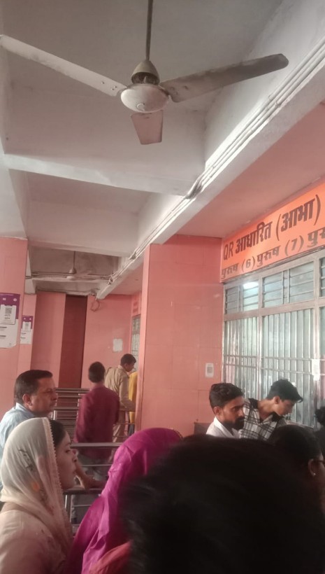 OPD के दौरान काउंटरों के बाहर पंखे बंद होने से दवा लेने पहुंचे मरीजों व तमीरदारों के छुटे पसीने