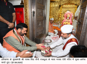 ट्रकों को रवाना करने से पहले मुख्यमंत्री ने लिया माता मनसा देवी का आशीर्वाद