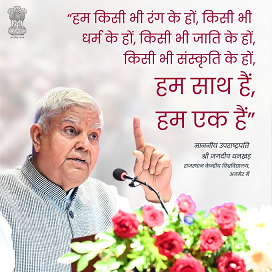 भारत के उपराष्ट्रपति जगदीप धनखड़ ने अजमेर के राजस्थान केन्द्रीय विश्वविद्यालय में छात्रों को संबोधित किया। इस मौके पर उन्होंने कहा कि “दुखद विषय है, चिंता का विषय है, चिंतन का विषय है, मंथन का विषय है कि कुछ भटके हुए लोग संविधान की शपथ के बावजूद भारत मां को पीड़ा दे रहे हैं। राष्ट्रवाद के साथ समझौता कर रहे हैं।