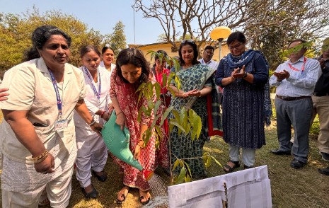 महिला संगठन के कार्यों की जानकारी लेते हुए किया वृक्षारोपण