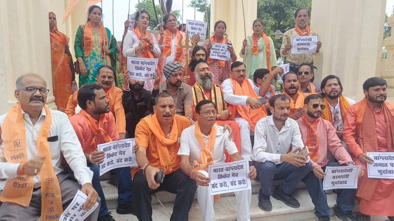 भारत-बांग्लादेश क्रिकेट सीरीज रद्द कराने की मांग, हिन्दू महासभा ‘त्रिदंडी’ का लखनऊ में प्रदर्शन