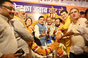 आम आदमी पार्टी के वरिष्ठ नेता एवं राज्यसभा सदस्य संजय सिंह ने सोमवार को पटेल नगर में ‘जेल का जवाब वोट से’ संकल्प सभा की। नई दिल्ली से इंडिया गठबंधन के प्रत्याशी सोमनाथ भारती के समर्थन में हुई सभा में लोगों ने ‘जेल का जवाब वोट से’ देने की शपथ ली। संजय सिंह ने कहा कि सूूरत के बाद इंदौर की घटना से साफ हो गया है कि भाजपा आपके वोट का अधिकार छीनना चाहती है। सूरत में बिना चुनाव कराए भाजपा के प्रत्याशी को जीता दिया गया, जबकि इंदौर में कांग्रेस के प्रत्याशी को पर्चा वापस लेना पड़ा। मध्य प्रदेश, कर्नाटक और महाराष्ट्र में सरकार गिराकर भाजपा ने अपनी सरकार बनमा ली। ये लोग पूरे देश में गुंडागर्दी कर सरकारें गिरा रहे हैं। ये लोग संविधान बदलकर आपसे वोट का अधिकार छीनना चाहते है। इसलिए इस बार हमें अपने वोट से इनको जवाब देना है।
