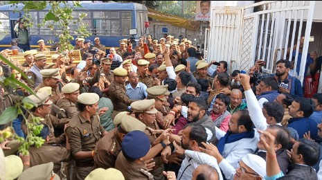 अजय राय व PL पुनिया व उनके समर्थकों व पुलिस के बीच धक्कामुक्की व नोकझोंक