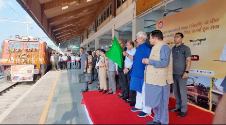 New Delhi, (Mukesh Kumar): कश्मीर घाटी के बड़गाम स्टेशन से आदर्श नगर दिल्ली के लिए 08 पार्सल वैन कोच रैपिड कार्गो ट्रेन शुरू की गई है। मुख्य अतिथि जम्मू-कश्मीर के उपराज्यपाल मनोज सिन्हा ने सोमवार को श्रीनगर रेलवे स्टेशन पर हरी झंडी दिखाकर इसे रवाना किया।