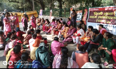 LG के आवास पर आशा वर्कर्स का प्रदर्शन, दिल्ली सरकार के नौ हजार वेतन देने के आदेश को तत्काल लागू कराने की मांग
