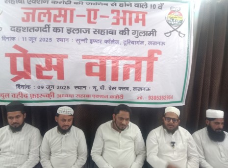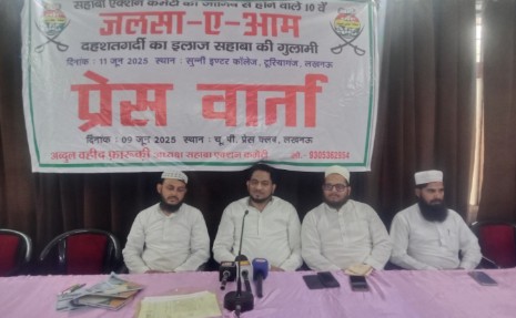सहाबा एक्शन कमेटी के तत्वाधान में सुन्नी इंटर कॉलेज के सिद्दीक ए अकबर हाल में 11 जून को रात्रि 9 बजे सालाना जलसे का आयोजन किया जाएगा। जलसे का विषय ‘दहशतगर्दी का इलाज? सहाबा की गुलामी’ है। यह जानकारी कमेटी के अध्यक्ष अब्दुल वहीद फारूकी ने सोमवार को प्रेस क्लब में आयोजित वार्ता के दौरान दी।
