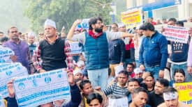 LUCKNOW: विधानसभा घेरने जा रहे शिक्षक अभ्यर्थियों व पुलिस में नोंक-झोंक, खींचकर घसीटा