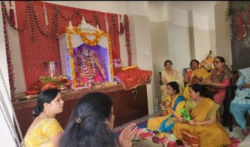 लखनऊ: चैत्र नवरात्रि में सहारा ग्रेस की महिलाओं ने कलश स्थापित कर मंदिर में किया कीर्तन