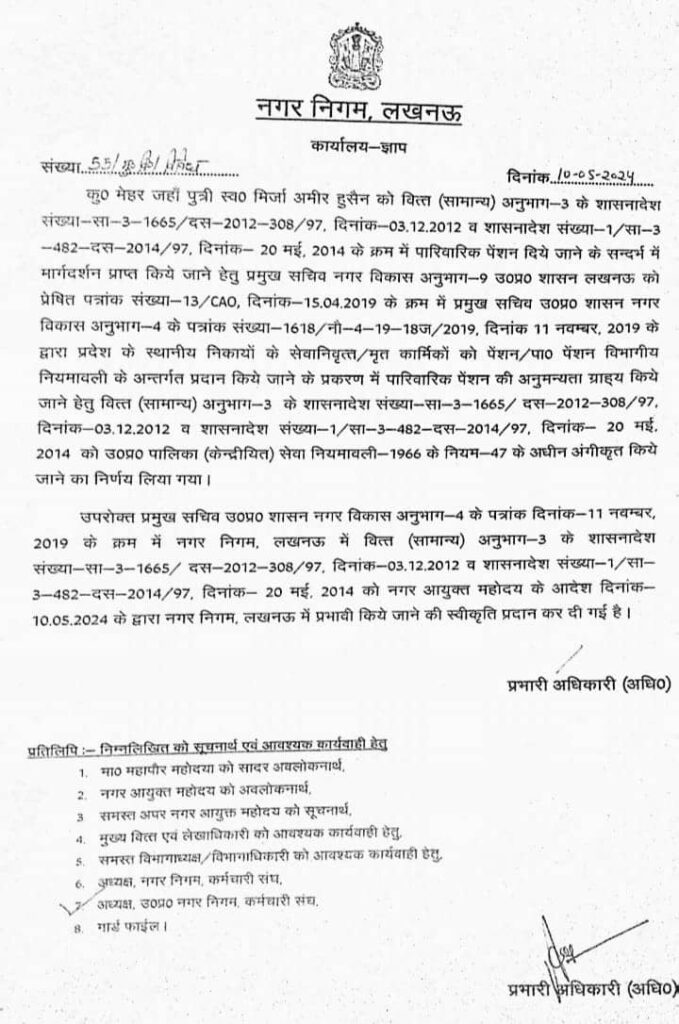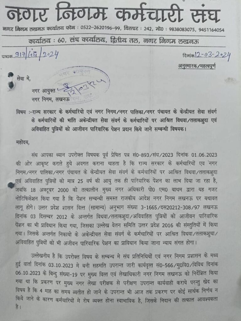 नगर निगम कर्मचारी संघ की मेहनत रंग लाई, कर्मियों पर आश्रितों को अब मिलेगा पारिवारिक पेंशन