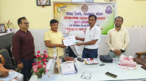 Sultanpur, (Mukesh Kumar): राजभाषा पखवाड़ा-2025 के अंतर्गत सुल्तानपुर जंक्शन पर सोमवार को हिंदी कार्यशाला एवं प्रश्नोत्तरी प्रतियोगिता आयोजित की गई। इस अवसर पर रेलवे कर्मियों को हिंदी के प्रयोग को दैनिक कार्यप्रणाली में और अधिक सशक्त ढंग से अपनाने के लिए प्रेरित किया गया।