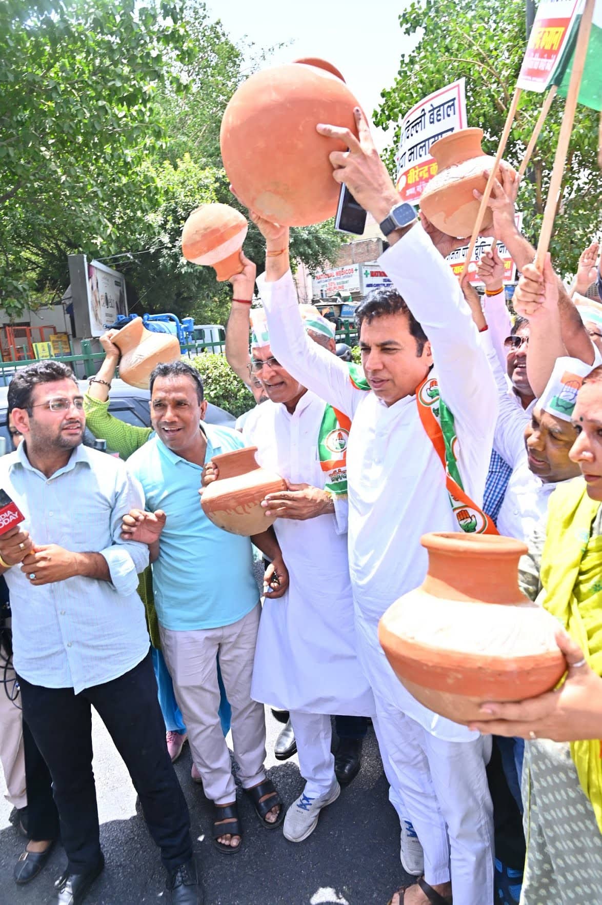 दिल्ली के कई इलाकों में पानी का भीषण संकट खड़ा हो गया है। अब विपक्ष लगातार आम आदमी पार्टी (AAP) की सरकार को घेर रहा है।इंडिया गठबंधन में रहने वाली पार्टी कांग्रेस ने भी अब AAP के खिलाफ मोर्चा खोल दिया है।दिल्ली कांग्रेस प्रमुख देवेंद्र यादव ने पार्टी कार्यकर्ताओं के साथ मिलकर दिल्ली के यूसुफ सराय इलाके में ‘मटका फोड़’ प्रदर्शन किया।