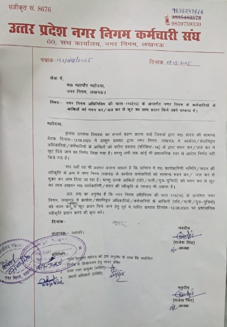प्रस्ताव पास होने के डेढ़ साल बाद भी लखनऊ नगर निगम कर्मी दे रहे जल व सीवर कर, महापौर से आदेश जारी कराने की मांग